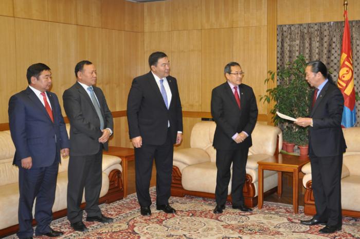 УИХ-ын гишүүн Л.Цог, Д.Ганбат, Б.Бат-Эрдэнэ, Ц.Оюунбаатар нар Өршөөл үзүүлэх тухай хуулийн төслийг Улсын Их Хурлын дэд дарга Р.Гончигдоржид өргөн барив.