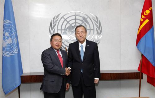 Ерөнхийлөгч Ц.Элбэгдоржийг НҮБ-ын Ерөнхий нарийн бичгийн дарга Бан Ги Мүн хүлээн авч уулзлаа