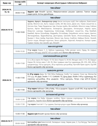 Өнөөдөр цахилгаан шугам тоноглолд хийгдэх засвар үйлчилгээний хуваарь