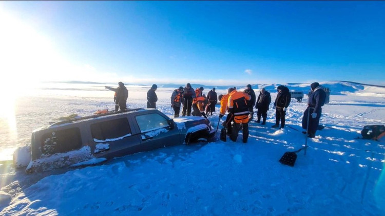 "Хөвсгөл" нуурт цөмөрсөн автомашиныг татан гаргахаар ажиллаж байна