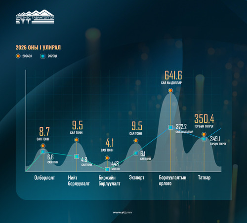 “ЭРДЭНЭС ТАВАНТОЛГОЙ” ХК 2026 ОНЫ НЭГДҮГЭЭР УЛИРАЛД 9.5 САЯ ТОНН НҮҮРС БОРЛУУЛЖ, 9.5 САЯ ТОНН НҮҮРС ЭКСПОРТОЛЛОО