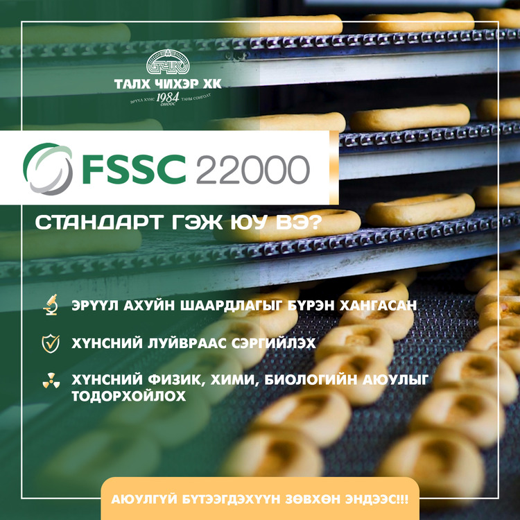Учир нь тэд хүнсний аюулгүй байдлыг хангахын тулд бүх хүнсний бүтээгдэхүүний аудит, хяналт, баталгаажуулалтыг дэлхий даяар хүлээн зөвшөөрдөг FSSC 22000 (v6) стандартыг өдөр тутмын үйлдвэрлэлдээ нэвтрүүлж чаджээ.