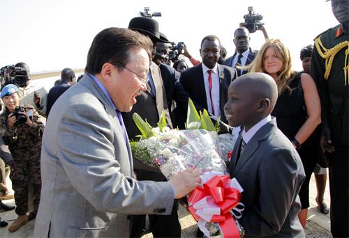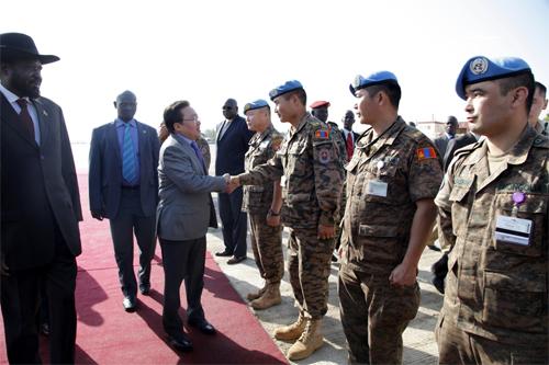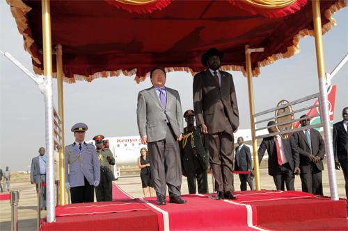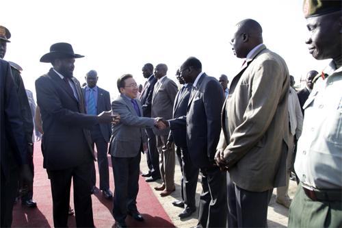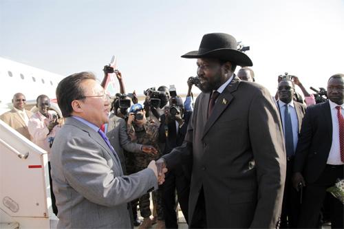 Жуба хотын олон улсын нисэх буудалд Төв Африкийн шинэхэн тусгаар тогтносон Бүгд найрамдах Өмнөд Судан улсын Ерөнхийлөгч Салва Кийр Монгол Улсын Ерөнхийлөгч Цахиагийн Элбэгдоржийг угтан авлаа. Хоёр орны Ерөнхийлөгч нарын уулзалтын үеэр Монгол Улс өөрийн зэвсэгт хүчний томоохон бүрэлдэхүүнийг тус улсад энхийг сахиулах ажиллагаанд оролцуулж байгаад талархаж байгаагаа Ерөнхийлөгч Силва Кийр илэрхийлсэн байна. Мөн тэрээр Монгол Улсын Ерөнхийлөгч тус улсад үүрэг гүйцэтгэж байгаа энхийг сахиулагчдаа эргэн ирж байгаа анхны төрийн тэргүүн, шинэхэн тусгаар тогтносон Өмнөд Суданд Ази тивээс айлчлан ирж буй анхны Ерөнхийлөгч болж буйг баяртайгаар мэдэгджээ.
