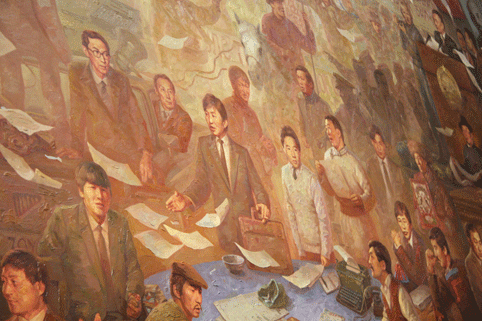 -Зургийн утга учир нь гэвэл ардчилсан хувьсгалыг л тольдож. Таны хувьд энэ түүхэн хувьсгалыг зураг болгон мөнхлөхөд хэр хүндрэлтэй байв?