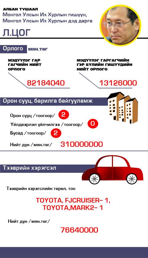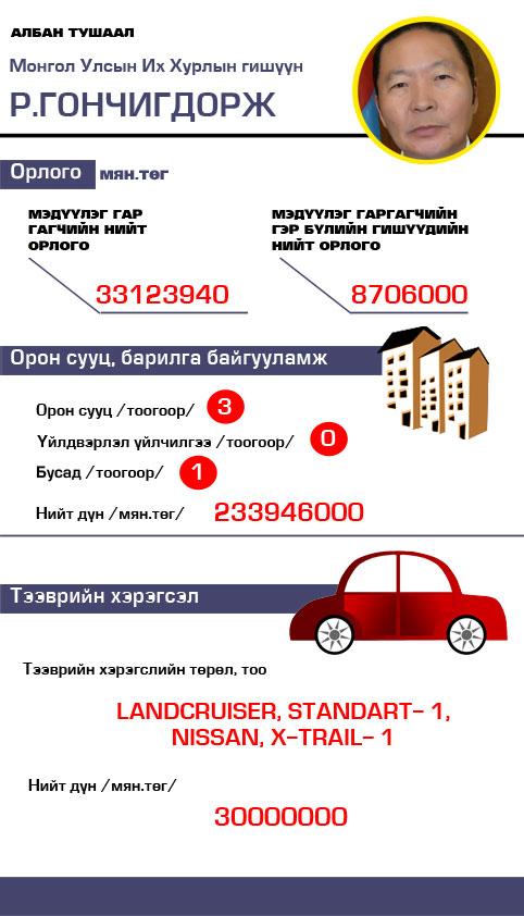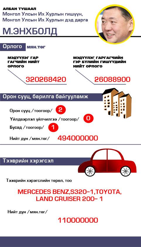 Эдгээр УИХ-ын дэд дарга байсан хийгээд дэд даргаасаа огцорсон, мөн дэд даргад нэр нь яригдаж байгаа гишүүдийн хөрөнгийг жишиж үзээрэй.