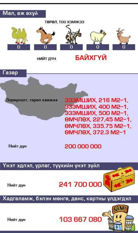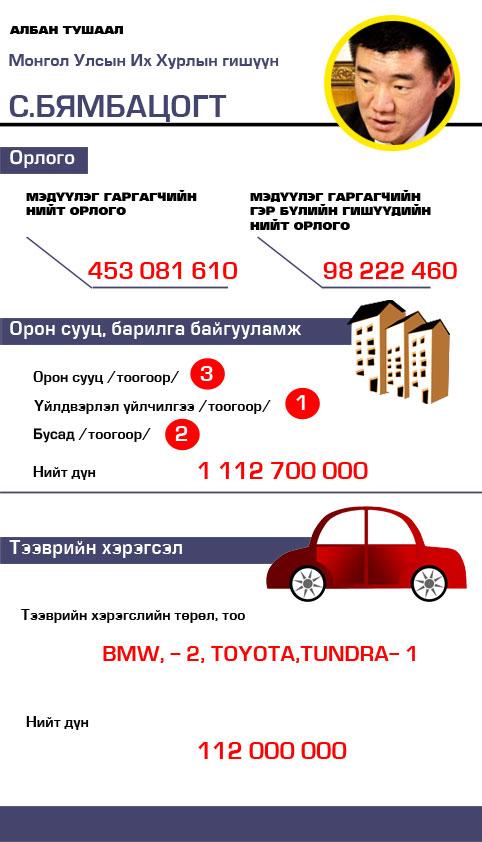 УИХ-ын гишүүн С.Бямбацогтын хөрөнгө орлогтой танилцаарай.