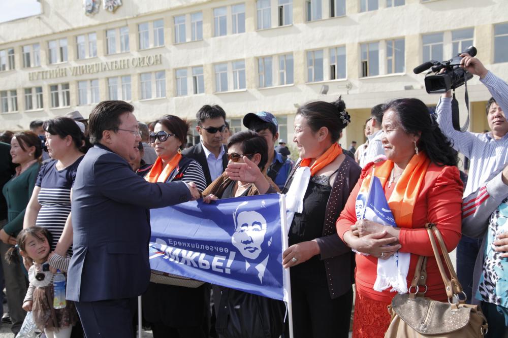 Монгол Улсын Ерөнхийлөгчийн сонгуульд Ардчилсан намаас нэр дэвшигч Ц.Элбэгдорж Баянхонгорын сонгогчдод хандан үг хэллээ. Тэрээр нэг ангид 50-60-аараа шахалдан сууж байгаа сурагчдын төлөө, цэцэрлэггүй гэртээ байгаа хүүхдүүдийн төлөө, тэтгэврийн мөнгө нь махны үнэд хүрэхгүй байгаа ахмадуудын төлөө ирэх дөрвөн жилд ажиллах болно. Сонгогчид хэн нэг хүнийг Ерөнхийлөгч болгох бус, Ерөнхийлөгчийн ажлыг нэг хүнээр хийлгэх гэж байгаа юм.