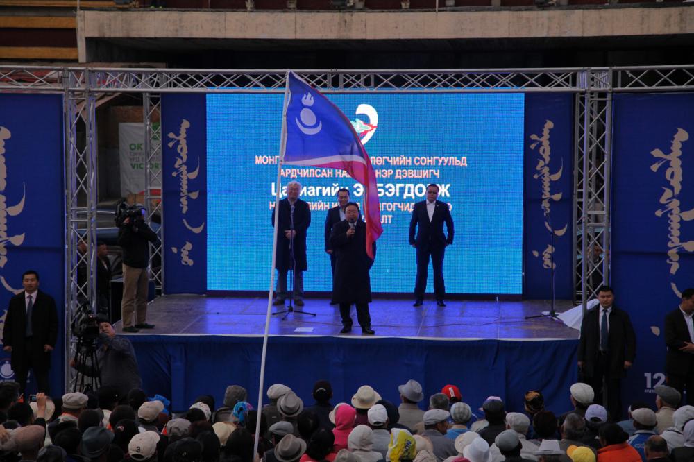 Миний ард түмэн намайг 1990 онд энэ талбайд үг хэлж байхад дэмжсэн. Одоо ч дэмжинэ гэдэгт итгэж байна. Би монголын ард түмний эрх чөлөө, ардчилал, нийтлэг эрх ашгийг олон улсын тавцанд ч, дотооддоо ч төлөөлж чадна. Төлөөлсөн шиг төлөөлж чадна. Сая хөдөө явж байхад иргэд маань “чаддаг чаддаг ажлыг нь хийлгэвэл яасан юм” гэж ярьж байна. Ерөнхийлөгч маань авлигатай тэмцэж чаддаг. Ард иргэддээ эрхийг нь өгч чаддаг. Монголынхоо нэрийг дэлхийд гаргаж чаддаг. Ерөнхийлөгчөөрөө чаддаг ажлыг нь хийлгэе гэж ярьж байна. Тиймээ би таныг төлөөлж УИХ дээр чанга дуугарч чадна аа. Засгийн газар буруу ажил хийх гэж байвал би зогсоож чадна аа.