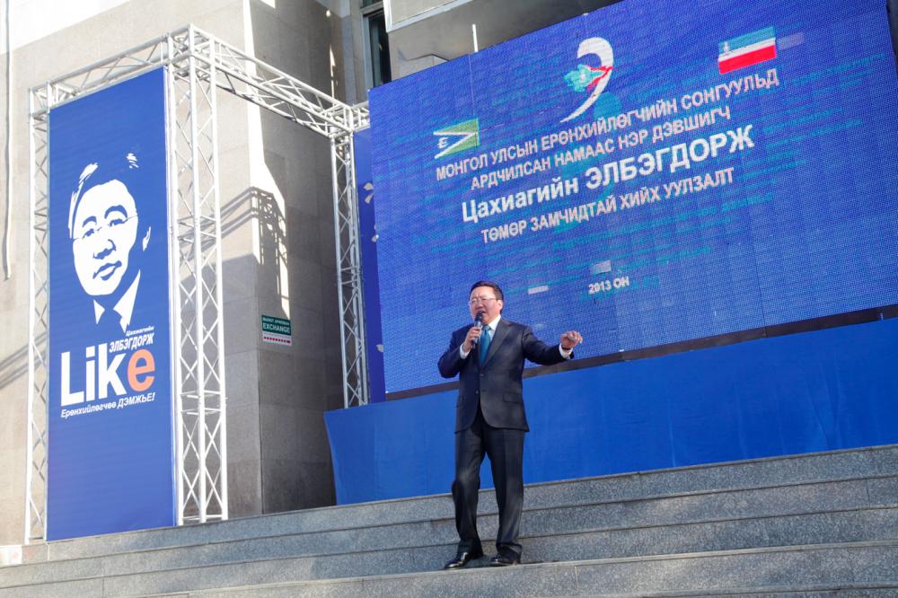 “Өөдлөх айл үүднээсээ” гэдэг биз дээ. Тэгвэл та нарт би бас нэг үг хэлчихье. “Төвхнөх айл төмөр замаасаа” Цахиагийн Элбэгдорж гээд бичээд аваарай. Ядрах үе гарвал Ерөнхийлөгчдөө хандаарай. Яагаад гэвэл ядарсан нэгэнд нь тусалдаг Ерөнхийлөгч байх болно. Харин намайг энэ сарын 26-ны ганц өдөр дэмжээрэй. Би 4 жил та нарыг дэмжинэ” хэмээн ярилаа.