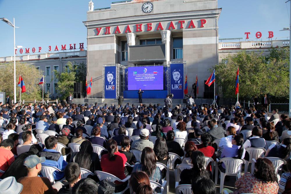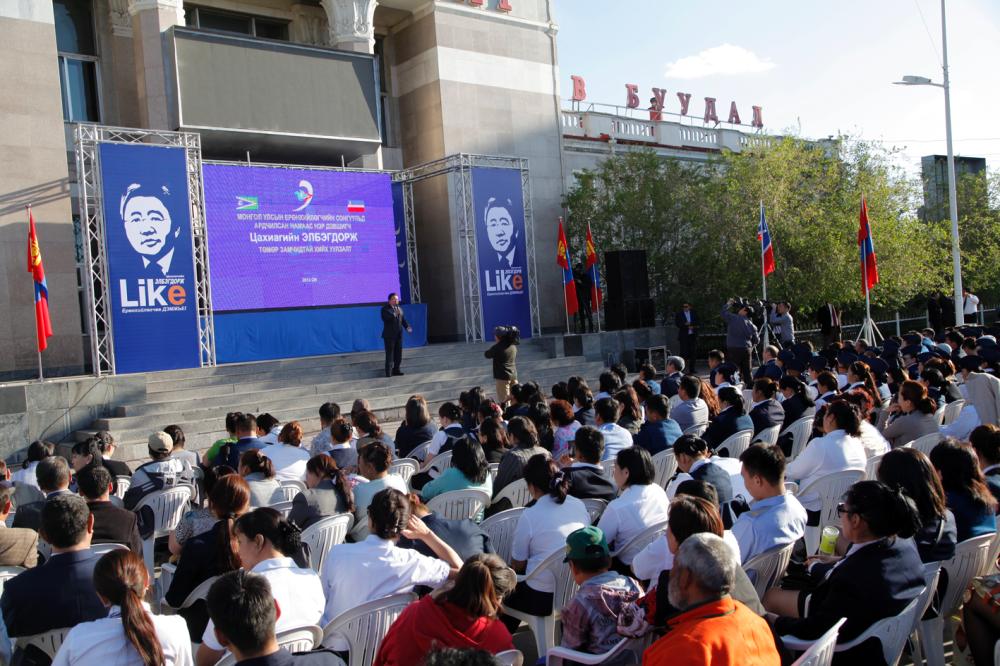 Энэ хүн бол ардчиллын алдааг ч засч чадна, ардчиллыг бэхжүүлж ч чадна. Хүний эрх, эрх чөлөөг дээдэлсэн ардчилсан Монгол Улсын төлөө дахин сонгогдсоноор маш их зүйлийг хийж чадна гэдэгт итгэж байна. Ерөнхийлөгчөө дахин нэг дэмжье” гэхэд төмөр замчид “Ерөнхийлөгч өө, Та илүү шүү” хэмээн нэгэн түрлэгээр хэдэнтэй уухайлан дэмжив.