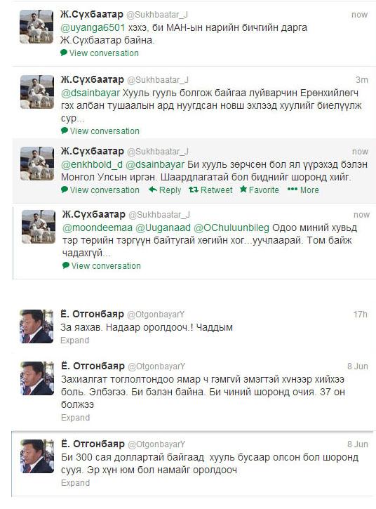Social network-т хаяггүй улстөрчийн ирээдүй бүрхэг хэмээн сүүлийн үед ярих болсон. Энэ үг үнэн гэдгийг баталж буй мэт манай улстөрчид идэж буй хоолноосоо авахуулаад өдөр тутмынхаа үйл явдлыг твиттер, фейсбүкээр тайлагнадаг болоод удаж буй. Энэ нь улстөрчид өөрсдийгөө иргэдэд сурталчилж, олонд таниулахаас гадна үзэл бодлоо ямар нэг цензyргүйгээр илэрхийлэх боломжийг олгодог.