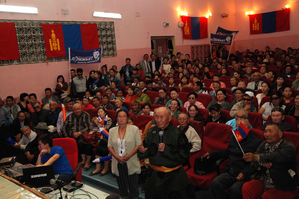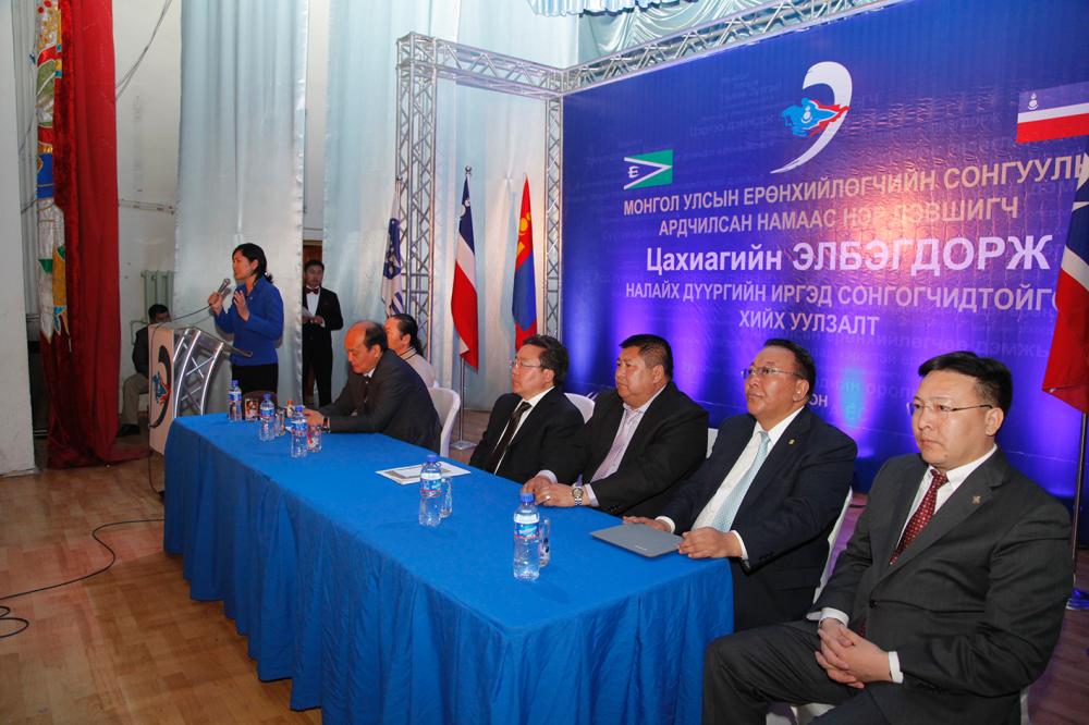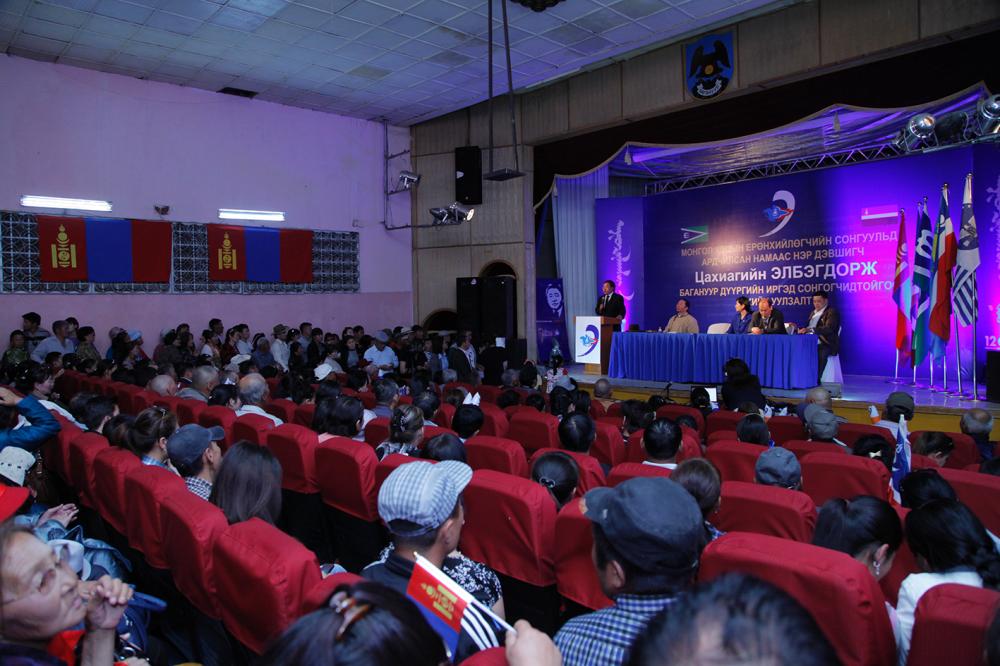УИХ-ын дэд дарга Р.Гончигдорж нэр дэвшигч Ц.Элбэгдорж өнгөрсөн дөрвөн жилд Төрийн тэргүүнээр ажиллахдаа Монгол Улсаа гадаадад нэр хүндтэйгээр төлөөлж ирсэн, ардчилсан Монгол орныг ямар ч оруулгагүйгээр гадна талд тунхаглаж ирснийг дурдаад “Түүний Харвард төгссөн гэсэн тодорхойлолтыг хараад л гадаадын ямар ч өндөр албаны эрхмүүд эрдмийнх нь өмнө толгой мэхийн хүндэтгэдэг” гэж байлаа. Тэрээр “Ардчилсан Ерөнхийлөгчөө сүүнийхээ дээжийг өргөн дэмжээрэй” хэмээн багануурчуудад уриаллаа.