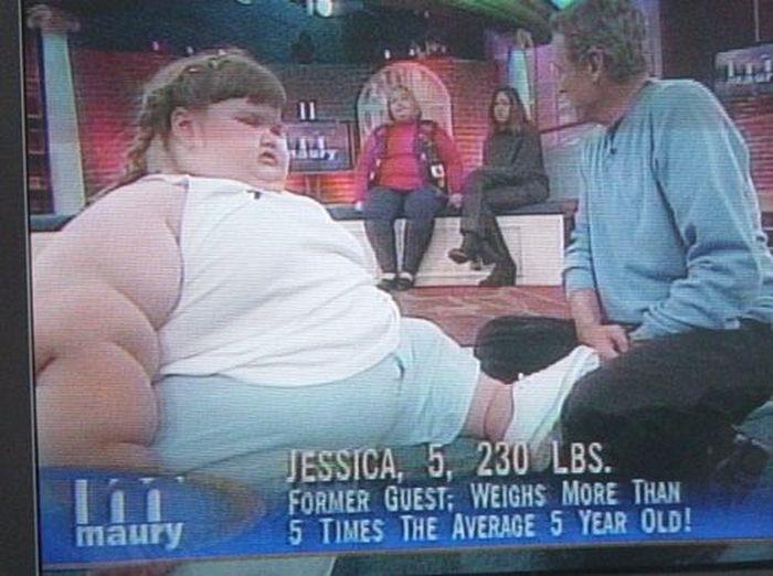 Жессикагийн ээж нь түүний энэ таргалаад байгааг ерийн нэг хэрэг биш, ердөө л идэхээс болж байгаа гэсэн байна. Үнэхээр тэр байнга л ээжээсээ идэх юм гуйж өглөөний цай усныхаа дараа 30 минут болоод л юм идье гэдэг байжээ. Ерийн хүүхэд өдөрт 1500-1800 кКалор хэрэглэдэг бол Жессика 10000 кКалор багадаад байдаг байсан гэнэ.