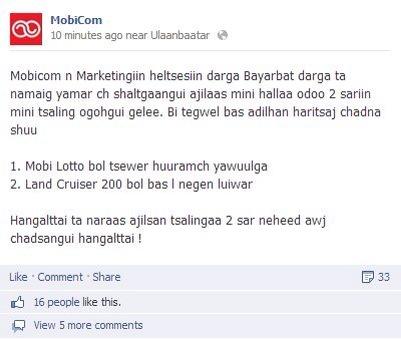 Үндэслэлтэй юм бичиж байгаачээ харваас наад пэйж чинь хуурамч нь байна ш дээ. MobiCom Official гэдэг нь жинхэнэ пэйж нь биз дээ. Халагдсан хүнийхээ юмыг пэйж дээрээ тавиад сууж байдаг дүүрчихсэн компани хаана байна? Мэдээллийн сайт байж жаахан бодож байж, үндэслэлтэй юм оруулж байгаач!!!!!!!