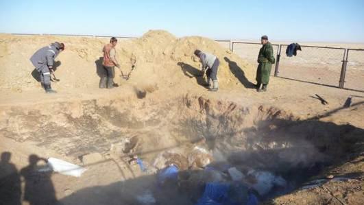 Малчид үхсэн малынхаа сэгийг булж байна.