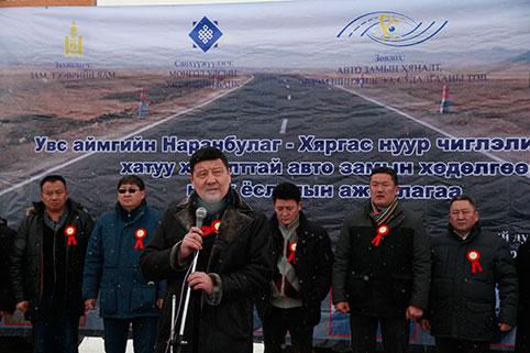 Увс аймгийг 2016 онд Улаанбаатар хоттой засмал замаар холбохоор төлөвлөж байгаа билээ. Үүний эхлэл болох Улаангом хот-Наранбулаг сум-Хяргас нуурын чиглэлийн 100 км хатуу хучилттай замын нээлт өнөөдөр боллоо.