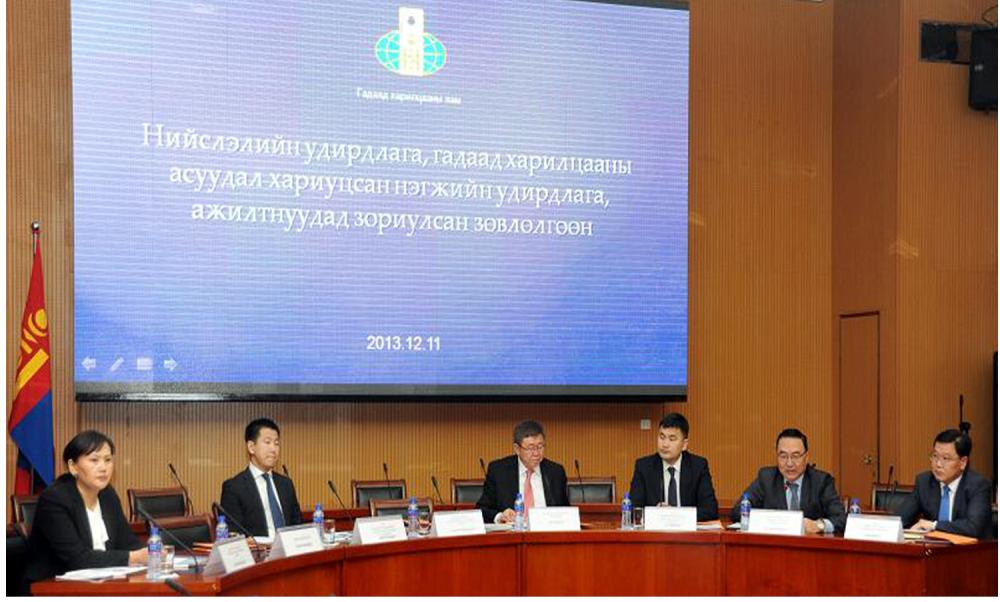 Төрийн гадаад бодлого, үйл ажиллагааны нэгдмэл байдлыг сайжруулах тухай Үндэсний Аюулгүй байдлын зөвлөлийн 2013 оны 01/01 дүгээр зөвлөмжийг хэрэгжүүлэх зорилгоор Монгол Улсын Засгин газрын 2013 оны 05-р сарын 11-ний өдрийн 169-р тогтоолыг танилцуулах зорилтын хүрээнд нийслэлийн ЗДТГ-ын Гадаад харилцааны хэлтэс Гадаад харилцааны яамтай хамтран гадаад харилцааны чиглэлээр хэрхэн ажиллах талаар зөвлөлдөх уулзалт зохион байгууллаа. Уулзалтад нийслэлийн 9 дүүргийн удирдлагууд, нутгийн захиргааны байгууллагуудын гадаад харилцааны асуудал хариуцсан ажилтнууд гээд нийт 100 орчим албан хаагчид оролцсон юм. Энэ удаагийн зөвлөлгөөнөөр Нийслэлийн ЗДТГ-ын Гадаад харилцааны хэлтэс, Гадаад харилцааны яамнаас Гадаад бодлого, зарчим ба нэгдмэл байдал, үйл ажиллагааны нэгдсэн зохицуулалт Нийслэлийн нутгийн захиргааны байгууллагуудын гадаад харилцааны үйл ажиллагааны журмын тухай, Гадаадын хөрөнгө оруулалт, гадаад худалдааны өнөөгийн бодлого, хандлага, Яриа хэлцэл хийх, гэрээ байгуулах зарчим зэрэг сэдвээр илтгэл тавьж, оролцогчидтой санал солилцлоо