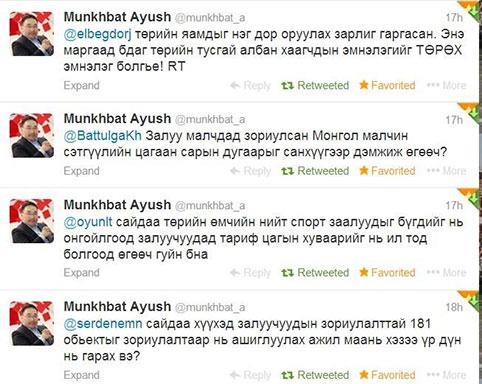 МЗХ-ны Ерөнхийлөгч А.Мөнхбат хүүхэд залуучуудын зориулалттай 181 обьктыг зориулалтаар нь ашиглуулах ажлын үр дүн хэзээ гарах талаар ХАНХ-ын сайд С.Эрдэнэ рүү жиргэлээ. Өнгөрсөн оны 4-р сараас Монголын Залуучуудын Холбоо хүүхэд залуучуудын хөгжлийн төлөө баригдсан барилга байгууламжуудыг зориулалтынх нь дагуу эргүүлэн ашиглуулах ажлыг эхлүүлсэн юм. Олны анхаарлыг хамгийн их татаж чадсан нь “Паркаа аваръя” хөдөлгөөн болон “Залуу техникчдийн ордон”-ы үйл ажиллагааг сэргээх зэрэг ажиллууд байсан юм. Энэхүү ажлын үр дүн нь гарч МУ-ын Ерөнхий сайд Н.Алтанхуяг “Хүүхэд залуучуудыг хөгжүүлэх, хүүхдийн хөгжлийг хангах, зориулалтаар барьж байгуулсан барилга байгууламжид улсын хэмжээний үзлэг явуулж, зориулалтын дагуу ашиглагдаж байгаа эсэхийг тогтоон дүгнэлт гаргах, зориулалт нь өөрчлөгдсөн барилга байгууламж болон хүүхдийн хөгжлийг дэмжих чиглэлээр бий болгосон хөрөнгийг хүүхдийн байгууллагын мэдэлд шилжүүлж, өмчлүүлэх асуудлаар санал боловсруулах үүрэг бүхий ажлын хэсгийг байгуулах” захирамжийг гаргаж ажлын хэсэг томилсон. Хүүхэд, залуучуудын хөгжлийн төлөө баригдсан барилга байгууламжуудын үйл ажиллагааг эргүүлж зориулалтаар ашиглуулах асуудал хариуцсан яамны болон Засгийн газрын хэмжээнд анхаарал татаж, ажил хэрэг болж байгаад олон залуус талархалтай хандаж байсан. Гэвч өнөөдрийн байдлаар хүүхэд залуучуудын зориулалттай обьктуудыг буцаан ашиглуулах ажил үр дүнгээ гаргаагүй байгаа бөгөөд цаашид гарах үр дүнг хүүхэд залуучууд чих тавин хүлээж байна.