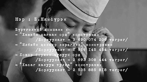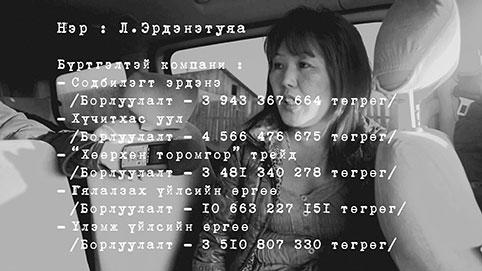 Мөн өөр хоёр ч хүн хэрэгтэй байгааг хэлээд, нэг компани байгуулахад 20 мянган төгрөг өгье гэсэн байна. Улмаар Л.Эрдэнэтуяагийн нэр дээр 10 компани, түүний эгч Л.Эрдэнэсувдын нэр дээр дөрөв, эгчийнх нь найз Б.Нямсүрэнгийн нэр дээр дөрвөн компани тус тус байгуулжээ. Тохирсон ёсоор, Л.Эрдэнэтуяад 200 мянга, бусдад нь дөрвөн компанийн тус бүр 80 мянган төгрөг өгсөн гэнэ. Түүнээс хойш компани байгуулсан хүмүүс “компанийн эзэдтэй” огт холбогдоогүй. Гэтэл нэг л өдөр Татварын ерөнхий газрын эрсдэлийн удирдлагынхан гурван эмэгтэйг хайж олж, их хэмжээний татвараас бултсан гэдгийг дуулгаж. Тэр хүртэл гурван бүсгүй өөрсдийгөө хэдэн тэрбумын эргэлттэй компанийн эзэн гэдгээ огт мэдээгүй явж. Тухайлбал, Б.Нямсүрэнгийн нэрээр бүртгэлтэй “Хашийн цагаан орд” констракшны борлуулалт 3.6 тэрбум, “Илбийн цэнхэр зэрэглээ” констракшны борлуулалт 1.9 тэрбум, Ховор боржин чулуун ордын борлуулалт 2.6 тэрбум, “Хасаг халууж тулга” констракшны борлуулалт 2.5 тэрбум төгрөг байдаг. Иргэн Л.Эрдэнэсувдын нэрээр дөрвөн компани бүртгэлтэй. “Баян намсрай жав” трейд констракшны борлуулалт 10.3 тэрбум, Дугарзайсан констракшн, “Одон бөмбөлөгт” констракшны борлуулалт 2.5 тэрбум, “Өргөн мөнх” трейдийн борлуулалт 4.1 тэрбум төгрөг хүрчээ.