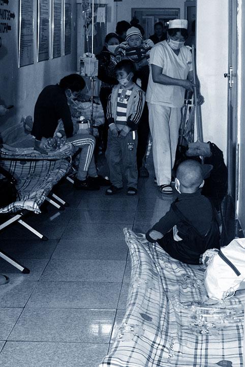 Эргэлтийн цонх хавиар хоол, цай, тортой хувцас хунар барьсан хүмүүс дараалж, зорьсон хүнтэйгээ хэдхэн үг солиод л эргэх. Эмнэлгийн хонгилоор голцуу л 1-3 настай хүүхдээ тэвэрсэн эхчүүд алхаж харагдана. Цагаан сарын өмнөхөн ханиаднаас сэрэмжлүүлэх зөвлөгөө хүргэхээр Хүүхдийн хоёрдугаар эмнэлгийг зорьсон ч хүнд суртлаас нь болоод зөвлөгөө хүргэх нь битгий хэл хаалганаас нь дотогш нэвтэрч чадаагүй. Гэтэл энэ удаа хоёр хүн рүү утас цохиод л Хүүхдийн тасгийн эрхлэгч, Анагаах ухааны доктор Ө.Туул эмчийн утсыг олж авлаа. Тэрээр “Шууд гуравдугаар давхарт гараад сувилагчид хэлээд өрөөнд хүрээд ир” гэв. Хүүхдийн тасаг руу орлоо. Тасгийн урт хонгилд эгнүүлэн тавьсан эвхдэг ор бүгд эзэнтэй аж. Хонгилоор явж байхад таарсан сувилагч, эмч нар “Гадуур хувцастай хүн орж болохгүй” гэх ч учраа хэлэхээр ойлгох юм. Эмнэлгийн хонгил дуу шуугиан ихтэй. Тарианы өрөөний гадна хүүхдээ тэвэрсэн ээж нар дугаарлана. Цагийн тариа хийж байгаа бололтой. Ээждээ тэврүүлсэн жаалууд хажуугаар нь зөрсөн хүн бүр рүү харж уйлах нь сэтгэл эмтэрмээр.