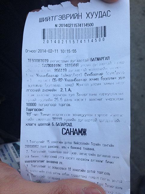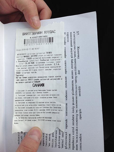 Гэтэл Замын хөдөлгөөний дүрмийн хоёрт Жолоочийн үүргийн тухай заалттай. Бүр тодруулбал 2.1-т “Механикжсан тээврийн хэрэгслийн жолооч дараахь бичиг баримтыг биедээ авч явна” гээд а хэсэгт нь “Тухайн тээврийн хэрэгслийн ангилалд тохирох Монгол Улсын үндэсний буюу олон улсын жолоодох эрхийн үнэмлэх” гэж бий. Тэгэхээр тэр жолооч жолооны эрхийн үнэмлэхгүй явж байсан болж таарах нь. Гэтэл ямар бичиг баримтыг нь уншуулж торгуулийн хуудас хэвлэж өгөв гэдэг асуудал гарч ирж байна.