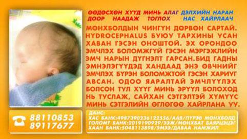 Тархины усан хавантай энэ бяцхан үрд тусалцгаая монголчуудаа. Монголд эмчлэх боломжгүй эл өвчин Солонгос улсад эмчилж болох аж. Цаг алдалгүй эмчлүүлбэл эдгэрэх боломжтой гэнэ. Эмчилгээний төлбөр