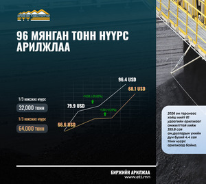 96 МЯНГАН ТОНН НҮҮРС 7.4 САЯ АМ.ДОЛЛАРООР АРИЛЖЛАА