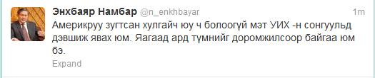 Яг одоо твитрээр ЭКС ЕРӨНХИЙЛӨГЧ Н.ЭНХБАЯР ийн ЖИРГЭЖ байна