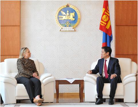 АНУ-ын Төрийн нарийн бичгийн дарга Х.Клинтон ардчиллын үнэт зүйлсийг дэлгэрүүлэх талаар Монгол Улс бүс нутагтаа үлгэр дууриал болж буйг дурдав.