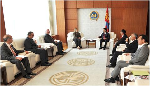 Монгол Улсад ажлын айлчлал хийж буй АНУ-ын Төрийн нарийн бичгийн дарга хатагтай Х.Клинтоныг Монгол Улсын Ерөнхий сайд С.Батболд Төрийн ордонд хүлээн авч уулзлаа. Ерөнхий сайд С.Батболд хатагтай Х.Клинтоныг энэ өдрүүдэд Улаанбаатар хотноо болж буй эмэгтэйчүүдийн манлайлалын асуудлаарх олон улсын форум, Ардчилсан орнуудын хамтын нийгэмлэгийн удирдах зөвлөлийн тусгай хуралдаанд АНУ-ын Төрийн нарийн бичгийн дарга оролцож байгаад Ардчилсан орнуудын хамтын нийгэмлэгийн асуудлаарх Үндэсний зөвлөлийн даргын хувьд баяртай байгаагаа илэрхийлэв.
