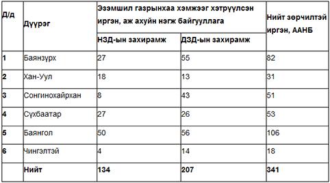 Эзэмшил газрынхаа хэмжээнээс хэтрүүлэн газар эзэмшиж, ашиглан, хашаа хатгасан 341 зөрчлийг дүүрэг тус бүрээр хүргэж байна.