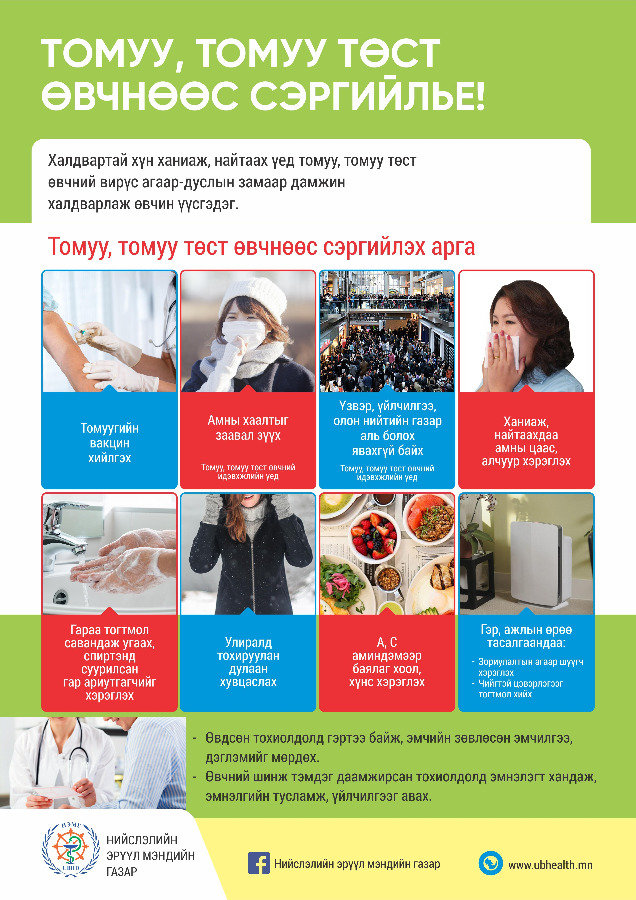 Хүйтний улирал эхэлж, сургууль цэцэрлэгийн цугларалт болон хүмүүсийн хөл хөдөлгөөн, олон нийтийн газрын нягтрал нэмэгдэх тусам амьсгалын замын цочмог халдварт өвчин тархах нөхцөл бүрдэж байдаг.