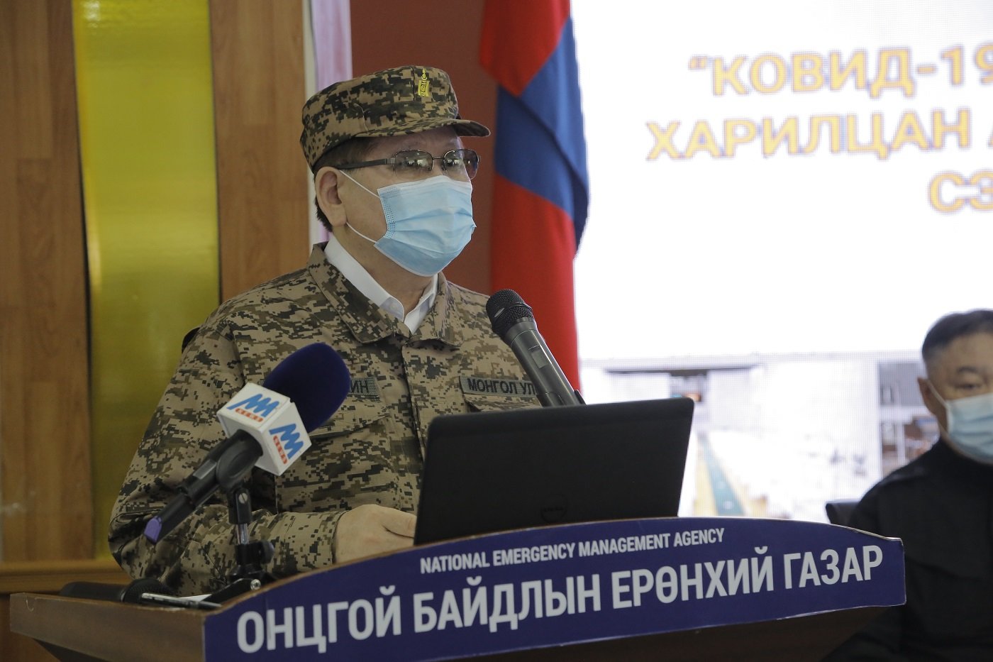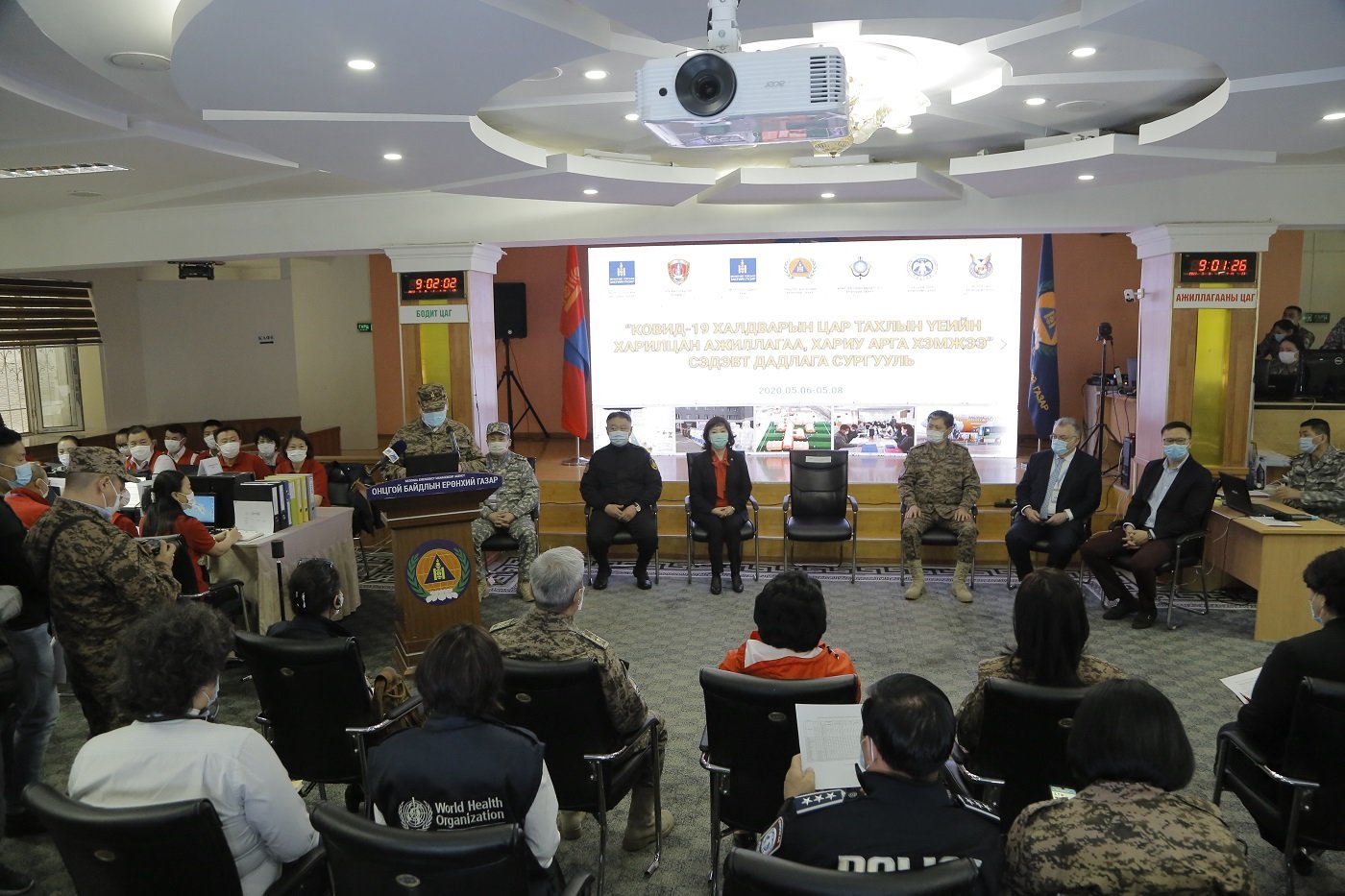 Шадар сайд Ө.Энхтүвшин хэлсэн үгэндээ, “Дэлхийн Эрүүл мэндийн байгууллагаас КОВИД-19 халдварын цар тахлын оргил үе 5, 6 дугаар саруудад тохиож болзошгүй гэж анхааруулж байгаа бөгөөд улс орнуудын засгийн газарт хөл хорио, тусгаарлалт хийх, эмч, эмнэлгийн ажилчдын тоог нэмэгдүүлэх, эмнэлгийн тусламж үйлчилгээний чанар, боломжийг дээшлүүлэх,хамгаалах хэрэгслийг ард иргэдээр бүрэн хэмжээгээр ашиглуулах, ариутгал халдваргүйжүүлэлтийн тоо давтамжийг нэмэгдүүлэх зөвлөмжийг өгөөд байна. Тиймээс цар тахлаас урьдчилан сэргийлэх, тэмцэх хүч хэрэгслийн бэлэн байдлыг дээшлүүлэх, гурван түвшний удирдлагыг нягтруулах, салбар дундын хамтын ажиллагааг уялдуулан зохицуулах, онцгой нөхцөл байдлын үеийн хариу арга хэмжээний тактикийг боловсронгуй болгох, нэрвэгдэгсдийг эмчлэх, хорио цээр, халдвар хамгааллын дэглэм тогтоох чиглэлээр хээрийн хүн эмнэлэг дэлгэх зорилгоор дадлага сургуулийг зохион байгуулж байна” гэлээ.