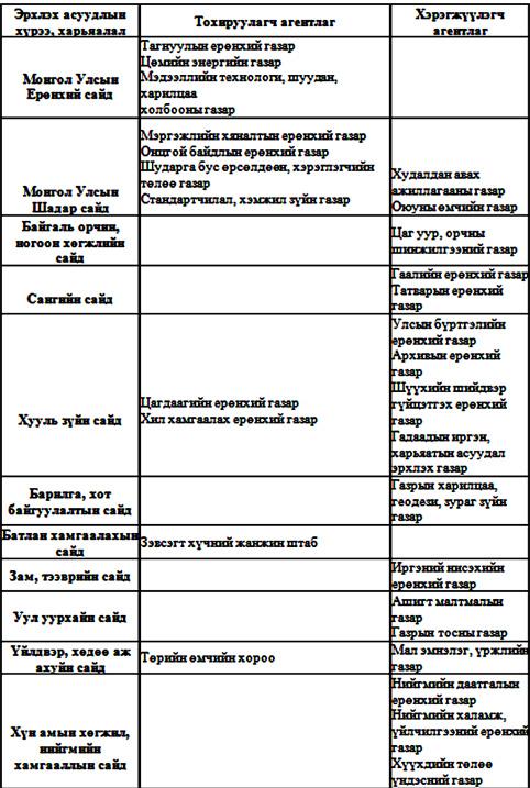 Ерөнхий сайд Н.Алтанхуяг ажлаа хүлээн авсныхаа дараахан төрийн албыг чадварлаг, цомхон, мэргэжлийн болгож, яамнаасаа том, данхайсан 43 агентлагийн ажил, үүргийн давхардлыг арилгаж, хүнд суртлын шат дамжлагыг цөөлнө гэдгээ мэдэгдсэн юм. Засгийн газрын ээлжит бус хуралдаанаар зарим агентлагийг татан буулгаж, холбогдох яамдад нь шилжүүллээ. Ингэснээр Засгийн газар тохируулагч 11, хэрэгжүүлэгч 17, нийт 28 агентлагтай болж байна.