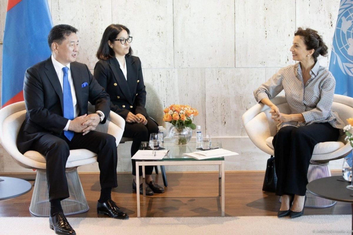 Монгол Улсын Ерөнхийлөгч Ухнаагийн Хүрэлсүхэд НҮБ-ын Боловсрол, шинжлэх ухаан, соёлын байгууллагын Ерөнхий захирал Одри Азулэй 2023 оны аравдугаар сарын 11-ний өдөр бараалхав.