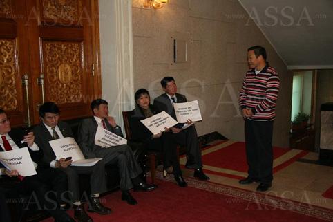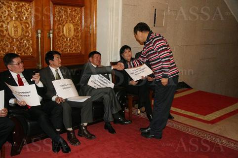 УИХ-ын гишүүн асан Л.Гүндалай УИХ-ын чуулганы үүдийг таглаад сууж байгаа МАН-ынхан дээр очив. Тэрээр, “Бидний байр ингэж солигдох гэж. Тэр тусмаа Нямдорж ингээд сууж байгаа нь сонин байна” гэж хэлсэн юм. Тэрээр ингэж хэлээд тэдэнтэй гар барилаа. Түүнээс МАН-ынхны талаар байр суурийг сонссон юм.