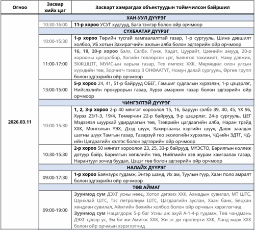 Өнөөдөр цахилгаан шугам тоноглолд хийгдэх засвар үйлчилгээний хуваарь