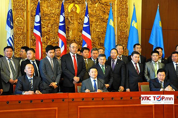 Монгол Улсын Ерөнхийлөгчийн сонгуульд Ардчилсан намаас нэр дэвшигч Ц.Элбэгдоржийг БНН, Эх орон нам дэмжин ажиллахаа илэрхийлж өнөөдөр хамтын ажиллагааны гэрээнд гарын үсэг зурлаа. Гэрээнд Ардчилсан намын дарга Н.Алтанхуяг, БНН-ын дарга Б.Жаргалсайхан, Эх орон намын дарга Б.Эрдэнэбат нар гарын үсэг зурсан юм.