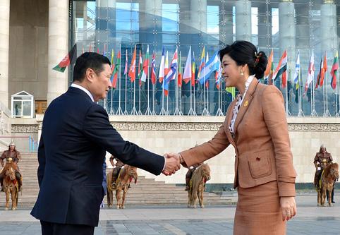 Монгол Улсын Ерөнхий сайд Н.Алтанхуягийн урилгаар Тайландын Вант улсын Ерөнхий сайд эрхэмсэг хатагтай Йинглак Чинават манай улсад албан ёсны айлчлал хийж байна. Засгийн газрын тэргүүн Н.Алтанхуяг ёслол хүндэтгэлтэйгээр угтан авч, Их эзэн Чингис хааны хөшөөнд хүндэтгэл үзүүлсний дараа хоёр орны Ерөнхий сайд нар албан ёсны хэлэлцээ хийж,