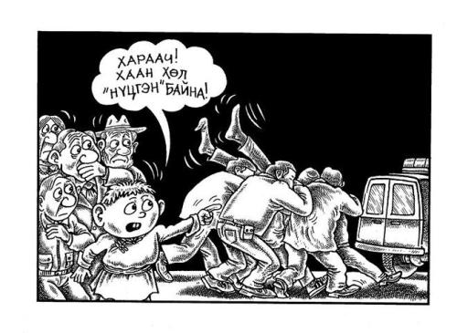 Цолмоон, ханиа. Нөгөө бор оймс чинь бүр цоорсон. Хуруу, өсгий гээд цоороогүй газар алга. Арга ч үгүй биз дээ, гуталгүй гарсан болохоор. Гэрээс өмсөж гарсан бор цамцны зах, тохой нь сэмэрч урагдаад дуусах нь. Намайг баривчлахдаа урсан тэр нь улам л томроод байна. Солих өмдгүй болохоор хилэн өмд маань бүр пад хар болсон.