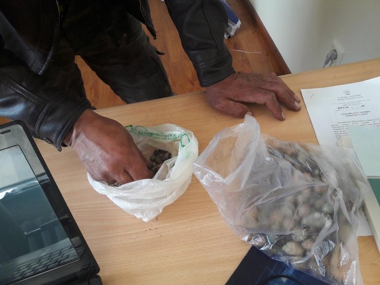 Хэнтий аймгийн Мэргэжлийн хяналтын газар, Цагдаагийн газартай хамтран өнгөрсөн амралтын өдрүүдэд Баянхутаг сумын нутагт иргэд хууль бусаар шинээр газар хөндөн байгалийн өнгөт чулуу олборлосон зөрчлийг илрүүлж 187 ширхэг байгалийн өнгөт чулуу болон газар ухахад ашигладаг багаж, эд зүйлийг хураан авчээ.