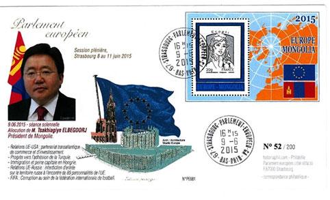Европын парламентаас Монгол Улсын Ерөнхийлөгч Ц.Элбэгдоржийн хөрөгтэй дугтуй, марк хэвлүүлсэн байна. Тус парламентын хүндэт индрээс үг хэлсэн дэлхийн улс орнуудын төр, засгийн тэргүүнүүдийн хөрөгтэй дугтуй, марк хэвлүүдэг нь Европын парламентын уламжлал ажээ.