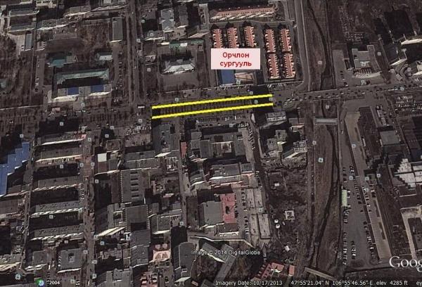 Орчлон сургуулийн урдах замын хоёрдугаар энгээг түр хаана